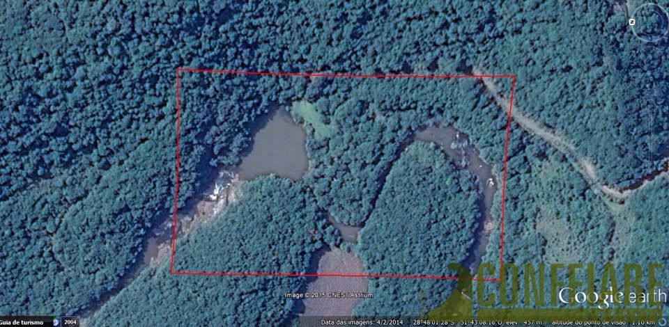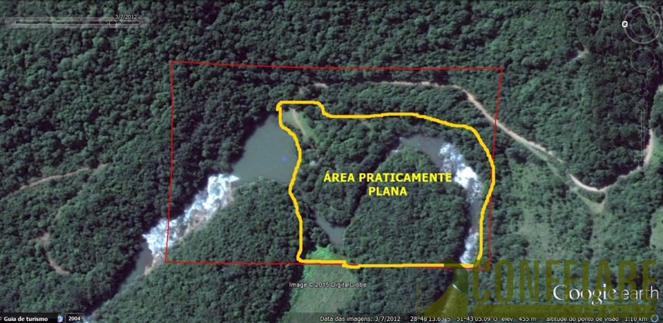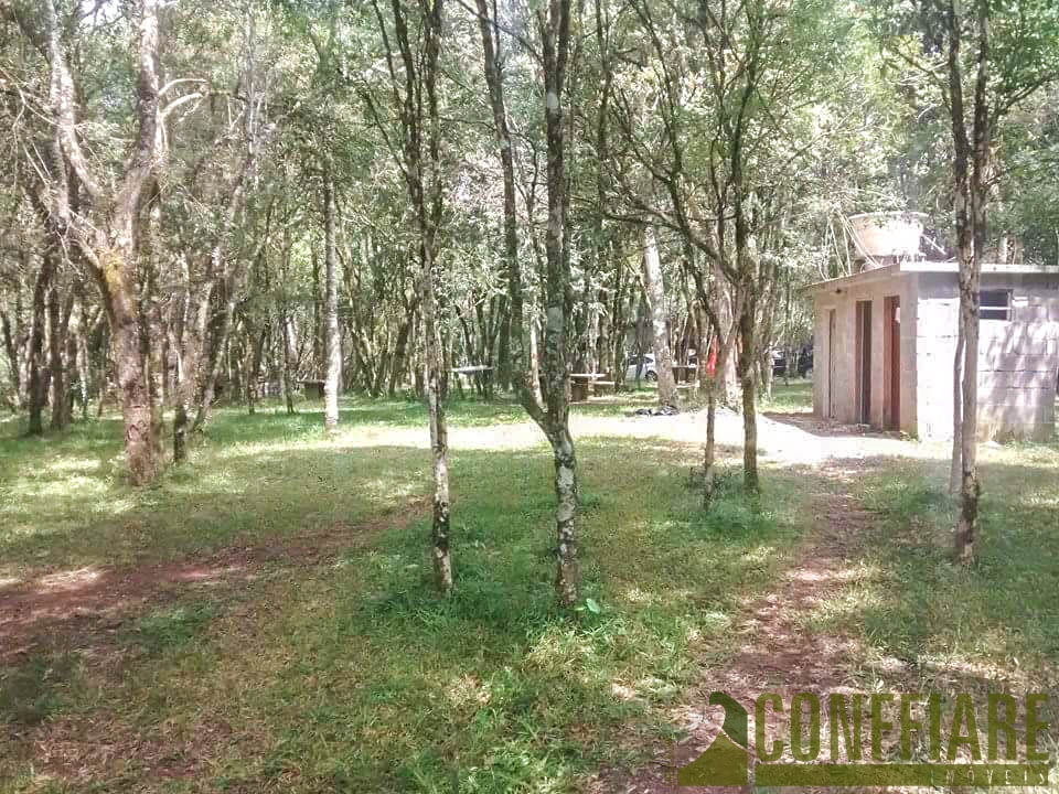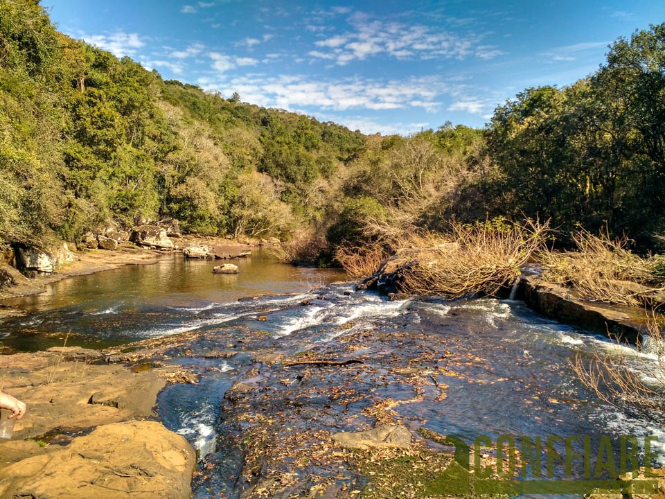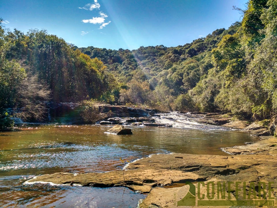 Área de camping, com rio, cachoeira, quiosques, banheiros, rede de energia elétrica e água potável, fácil acesso e próximo à cidade.